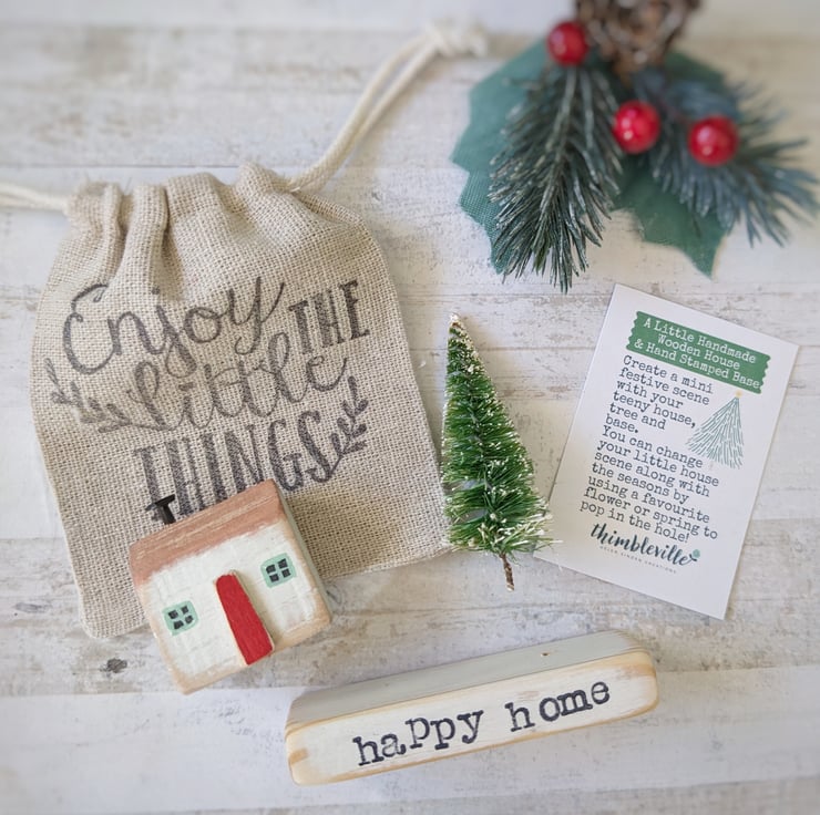 A teeny wooden house scene in a bag, that you can personalise with your own decoration!