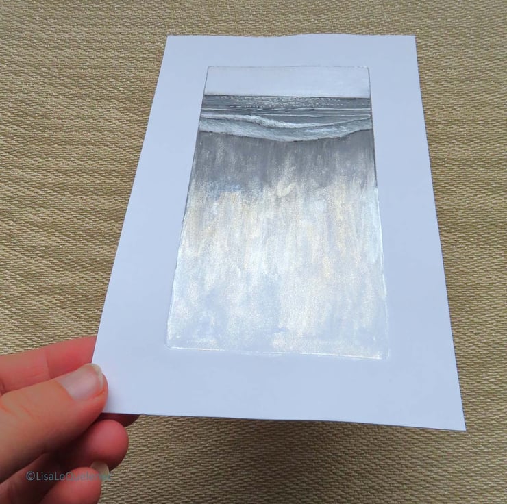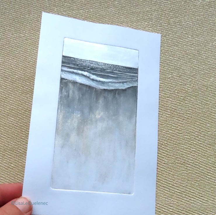 'Retreating Tide' original dry point print with added mixed media.