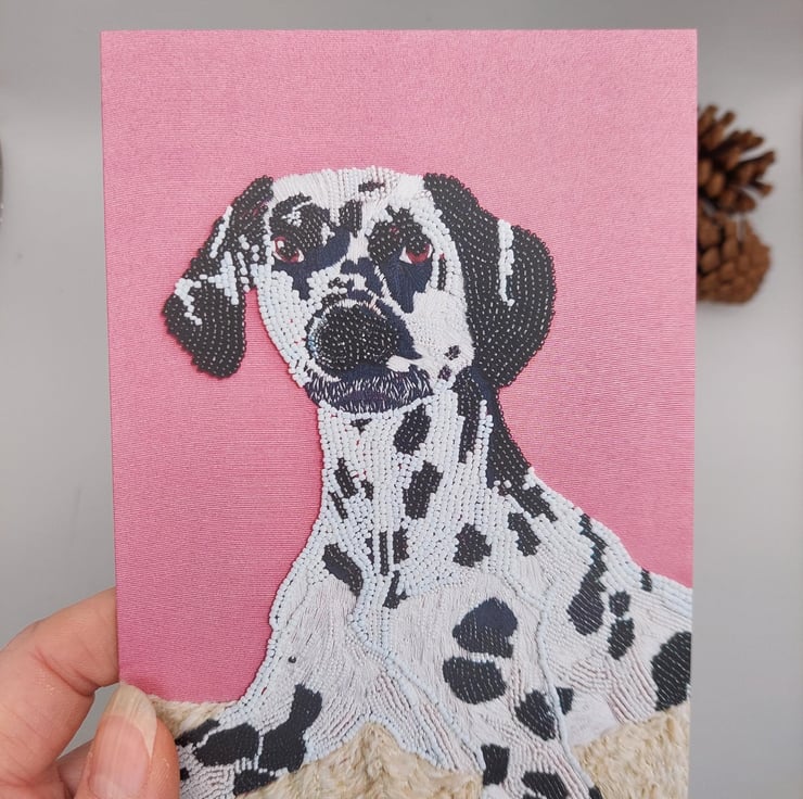 I was commissioned to embroider this picture of Sorbet the Dalmatian, which is the first dog in my collection. I couldn't resist turning it into a card.