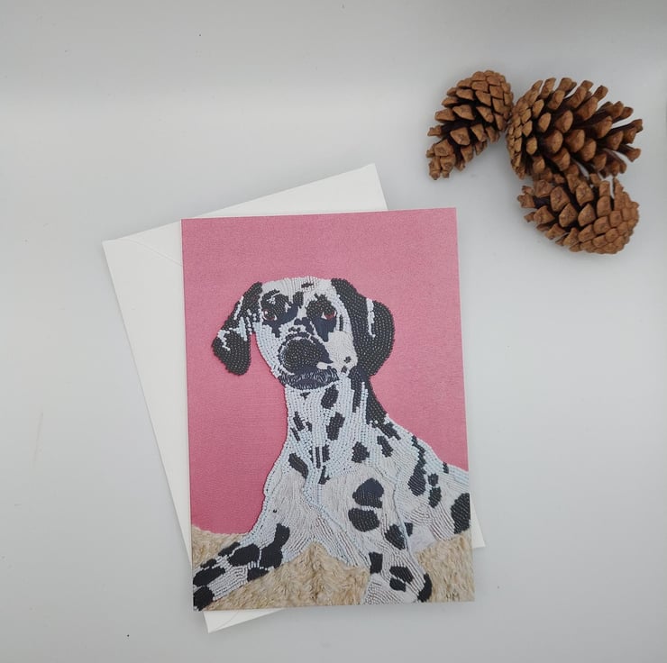 Hand-Embroidered Dalmatian Dog Blank Greeting Card