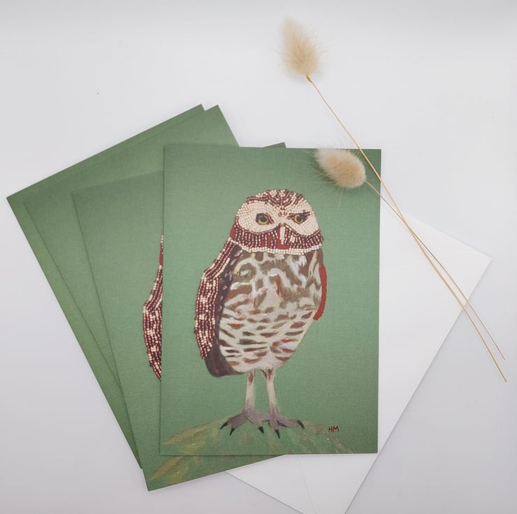 If you'd like, I can handwrite your message and send the card directly to the recipient—just let me know! The original Burrowing Owl artwork is also available for purchase. Feel free to contact me for more information.