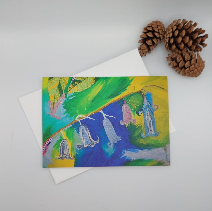 This Bluebell card was created from my original mixed media painting. Bluebells are very popular springtime flowers, so this would be a well received blank card that could be used to send a special note, thank you card or even a birthday card.
