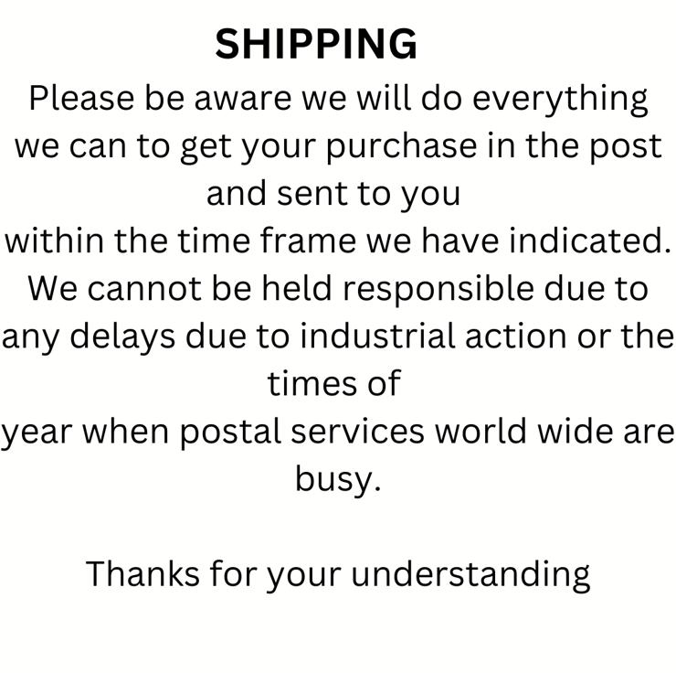 Please note that if your order is being posted outside mainland UK, you (or the recipient) may have to pay customs or VAT charges and a handling fee. The seller is not responsible for any charges or fees that may incur.