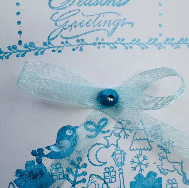 They’re finished off with a matching voile ribbon bow and pretty bead. Each has a different variety of images and greeting all done in a pastel archival ink with a beautiful sheen.