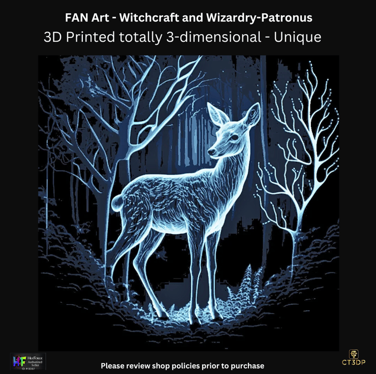 The Patronis spell is beautiful as it is enchanting. This fully 3-dimensional 3D printing 'painting' will look great in anyone's home. Potter fans will love this. Fully textured-you can actually feel the painting and all its lines. It is alive..
