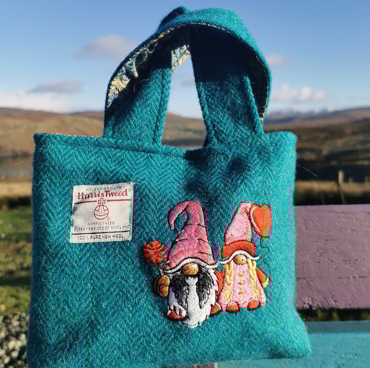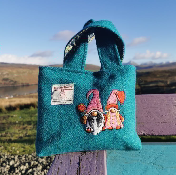 Harris Tweed Handbag with embroidered Mr and Mrs Gonk