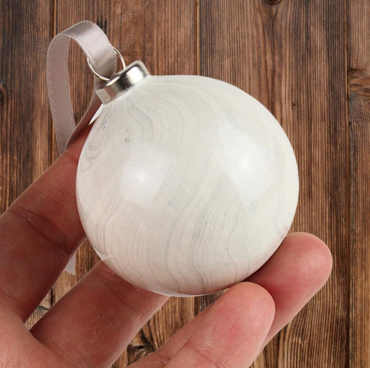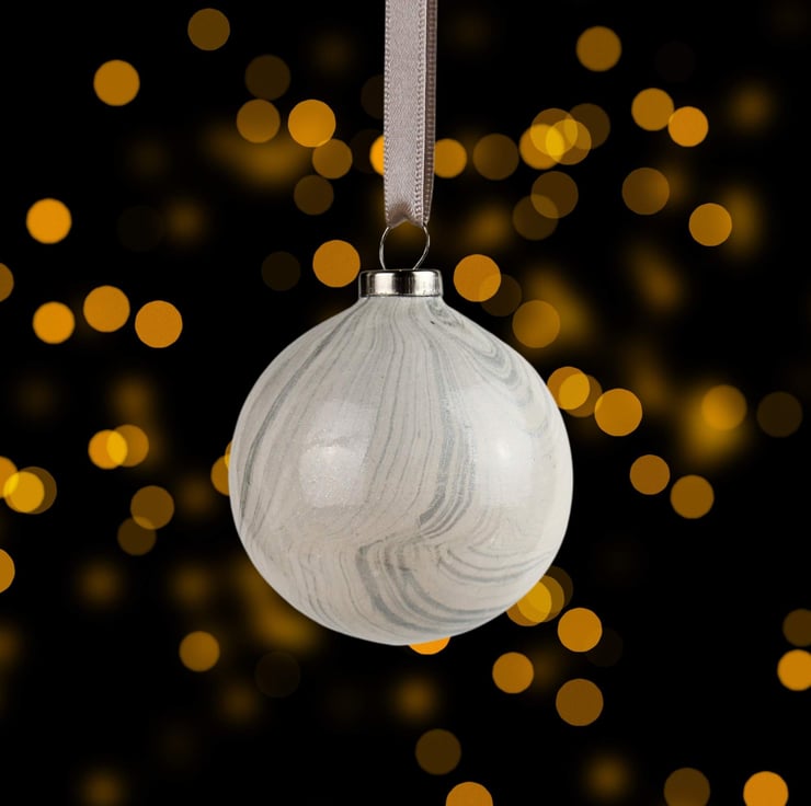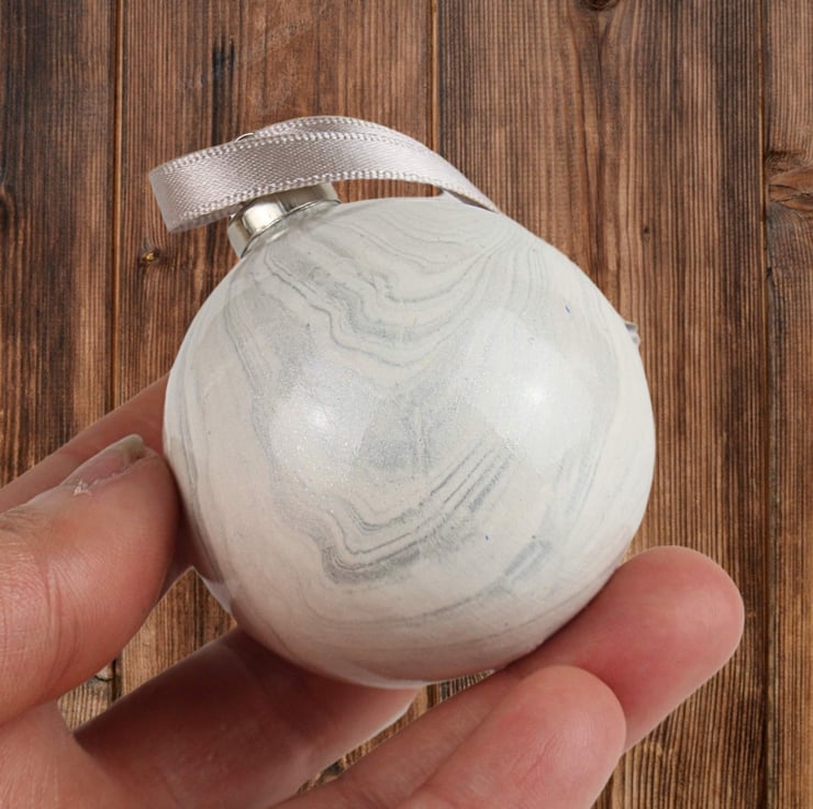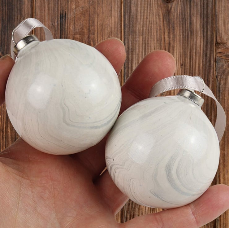 The baubles in this range are marbled directly onto the ceramic surface - a technique which is much more difficult than it sounds! Each bauble is marbled from a different bath, so they are all different and totally unique. They are lots of fun to make and totally addictive!