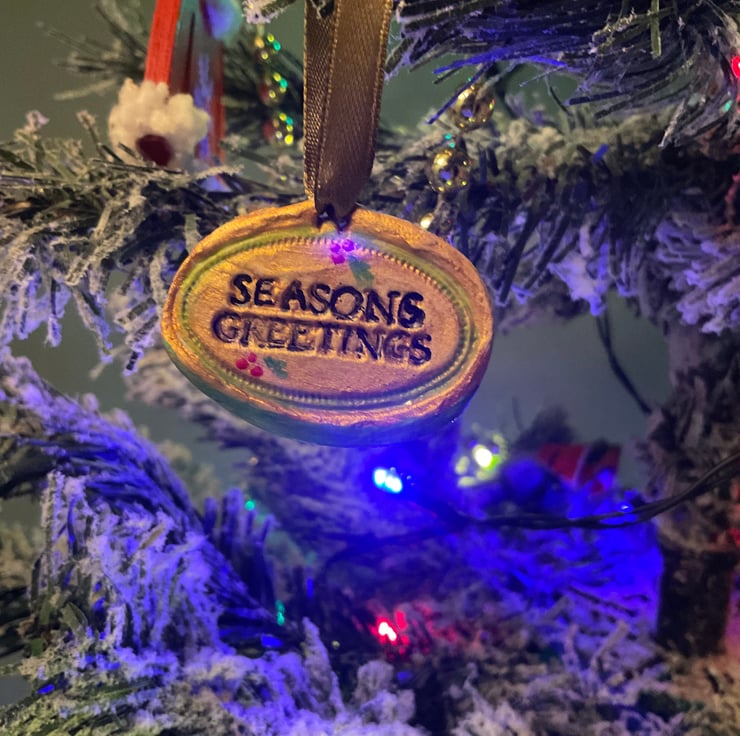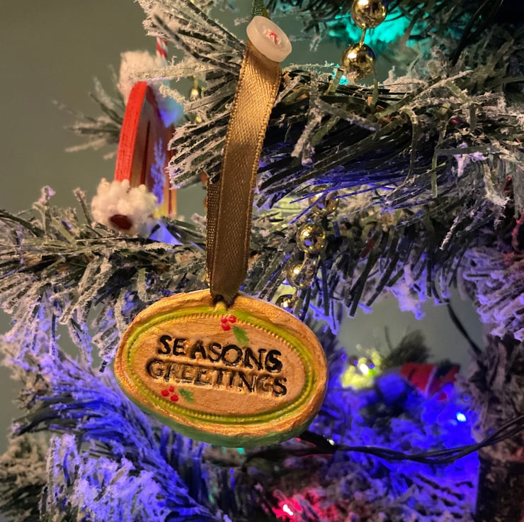 Have a special though for someone you appreciate this Christmas season with this handmade and hand painted clay Christmas ornament.
