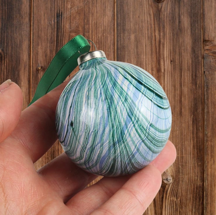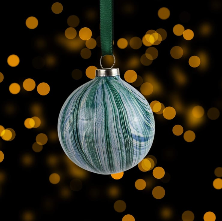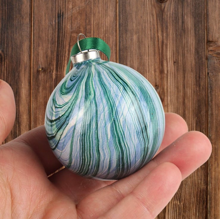 The baubles in this range are marbled directly onto the ceramic surface - a technique which is much more difficult than it sounds! Each bauble is marbled from a different bath, so they are all different and totally unique. They are lots of fun to make and totally addictive!