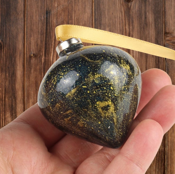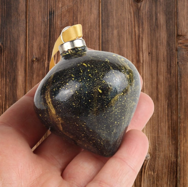 Similar to my other dark aesthetic black and gold bauble, but this one has hints of metallic teal along with the black with a soft gold background and gold speckle.