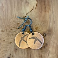 Leather beltloop keyfob with acid etched copper Swirling Swifts design