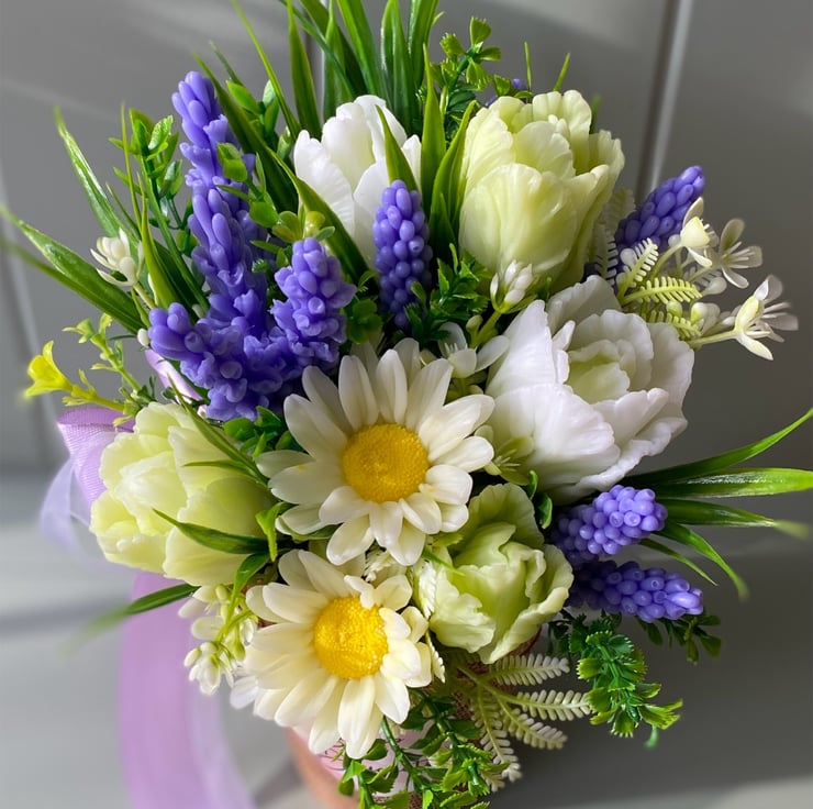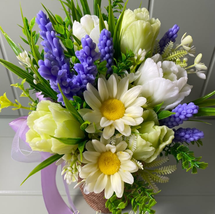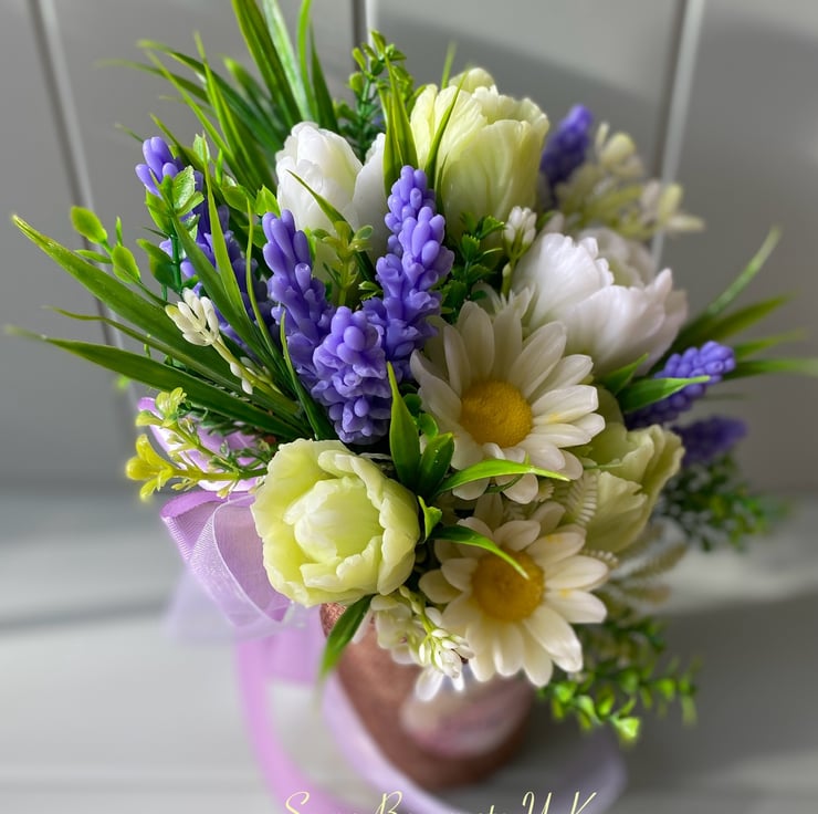 Customisable Handcrafted Soap Flower Bouquet – Tulips, Daisies, and Lavender