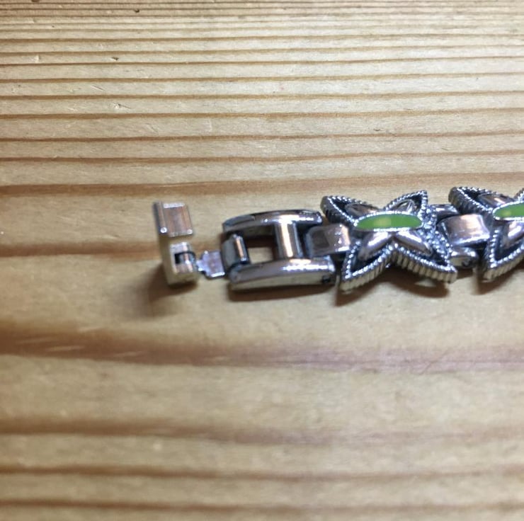 Pretty Upcycled Apple Green Star Flowers Stainless Steel Watch Parts Bracelet