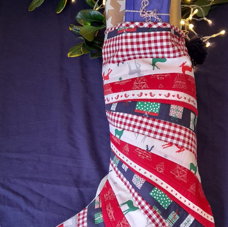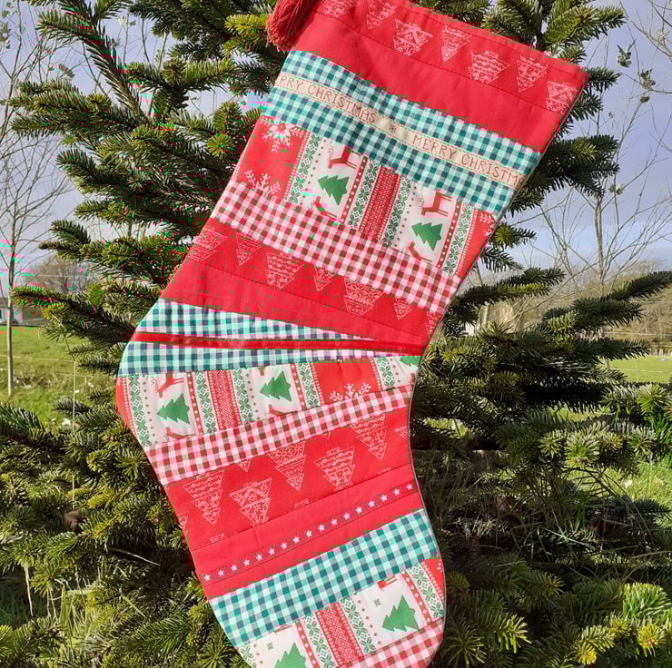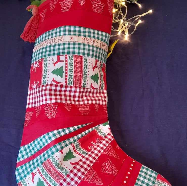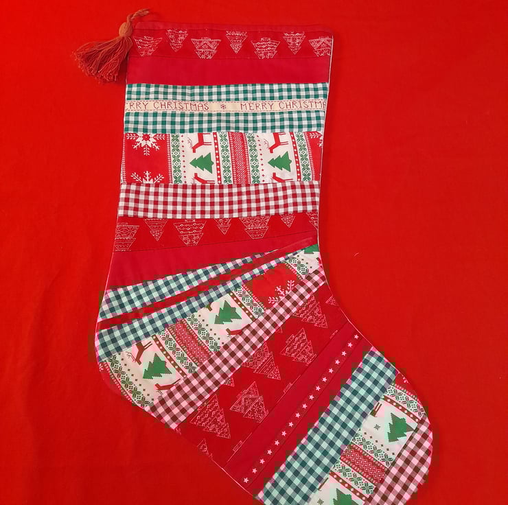 Patchwork Christmas Stockings, a perfect representation of the joy and excitement of the holiday season.