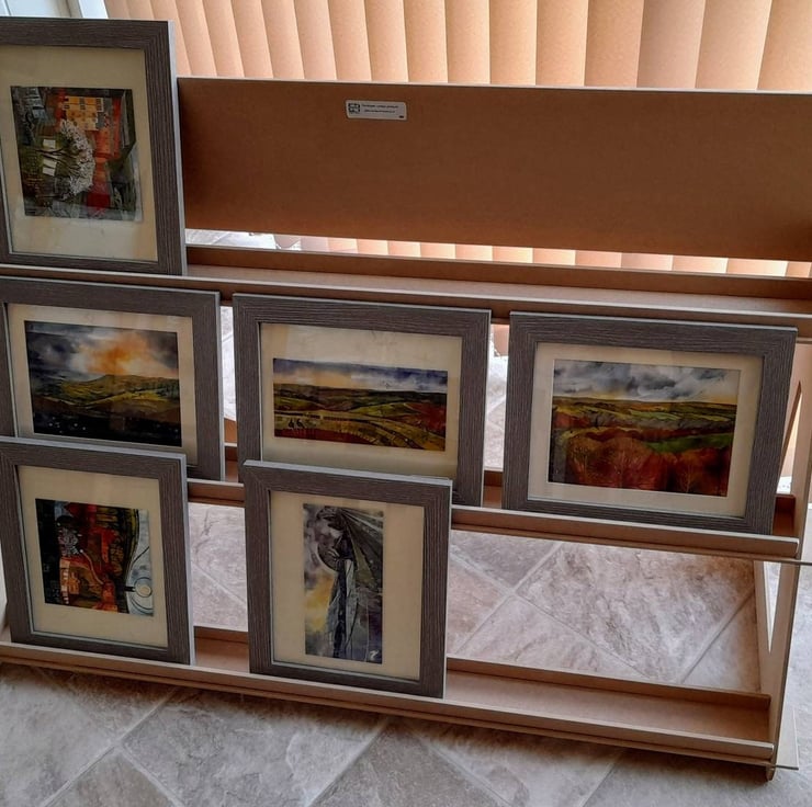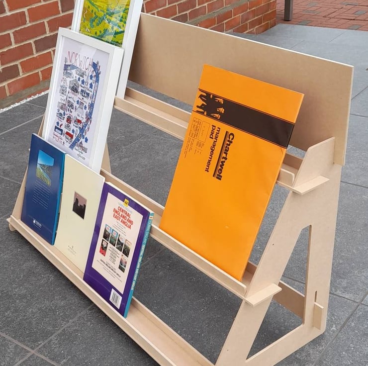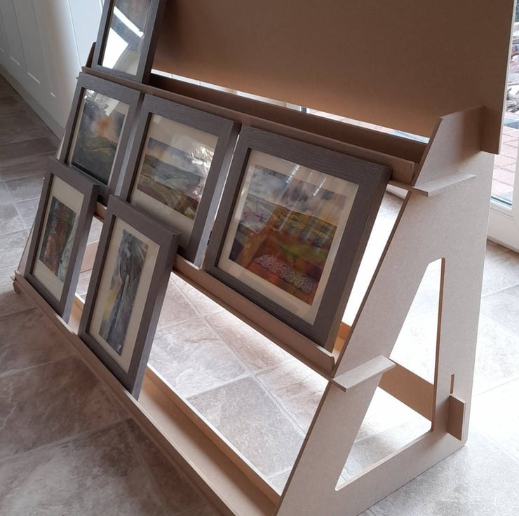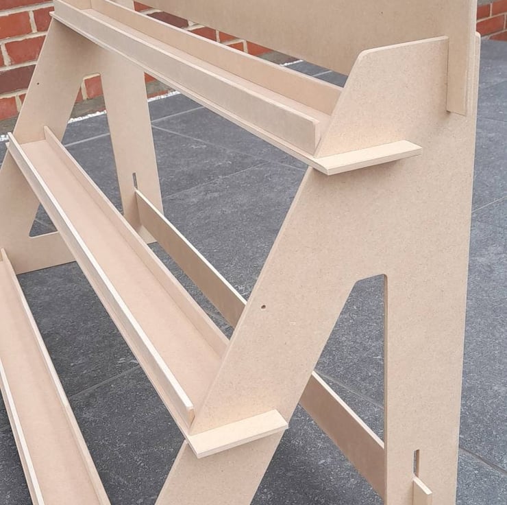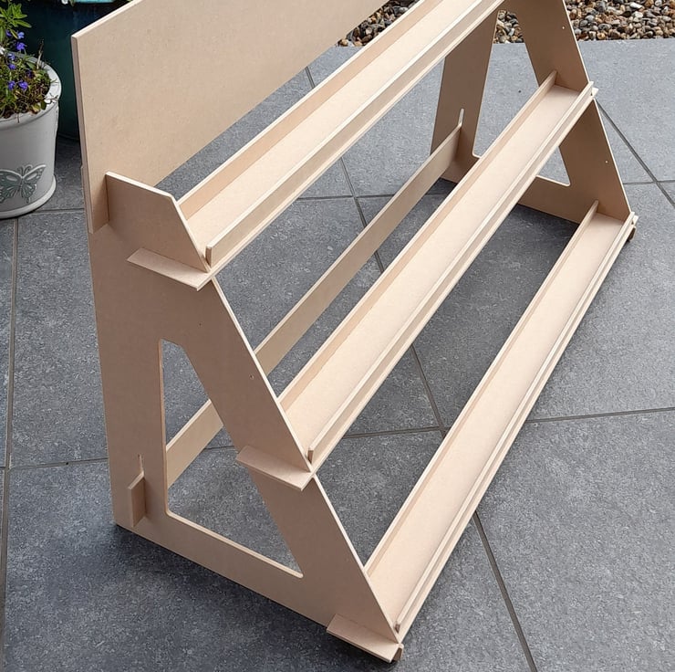 Being a flat packing display stand, this is ideal for craft fairs or shop displays. The stand consists of three shelves, two ends, a back support and a brace, making it compact and lightweight for transportation. It's also very quick and easy to assemble & dismantle. It doesn't require any screws, glues or other fixings (it simply slots together).