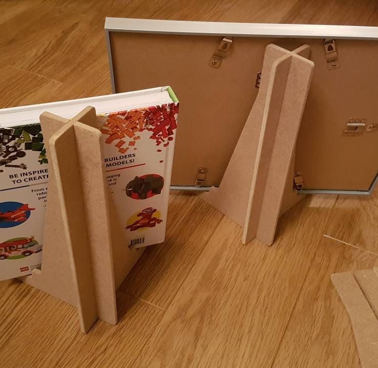 These are flat packing stands, suitable for displaying either picture frames, prints or books.