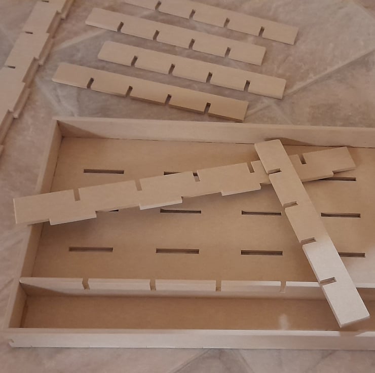 The tray is constructed from high quality 6mm thick MDF and is toothed & glued along all edges. This creates a very strong box.