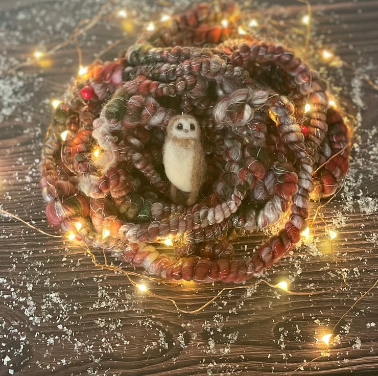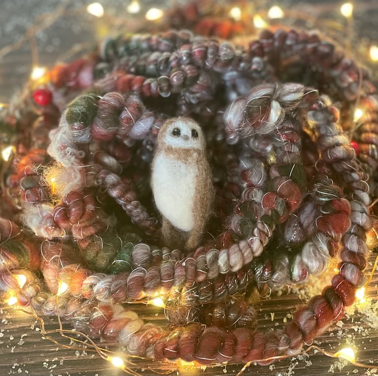 Felted owl decoration, a truly beautiful creature captured in a miniature Christmas decoration to hang on the tree or desired place.