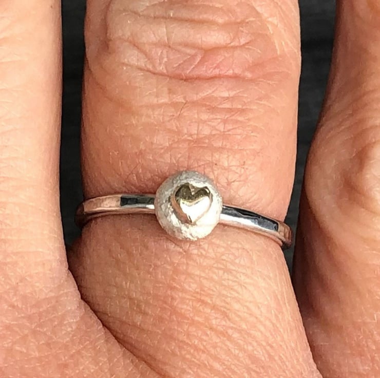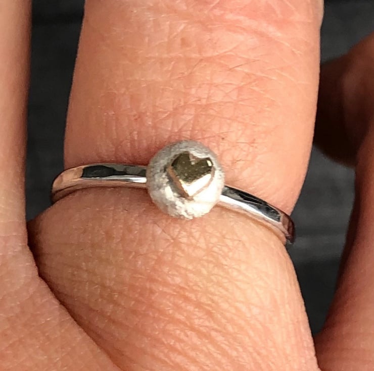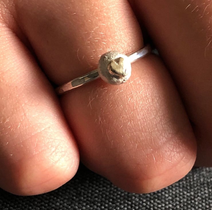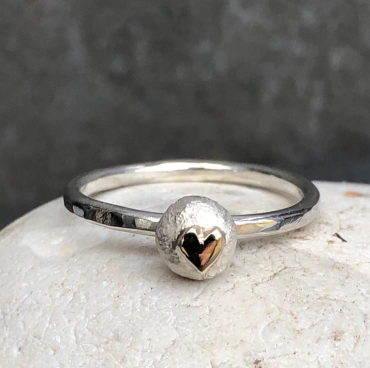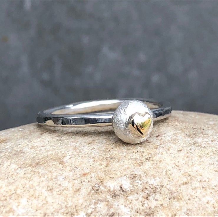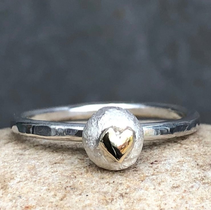 Gold Heart Pebble Ring, gold heart ring, silver pebble ring, pebble jewellery,