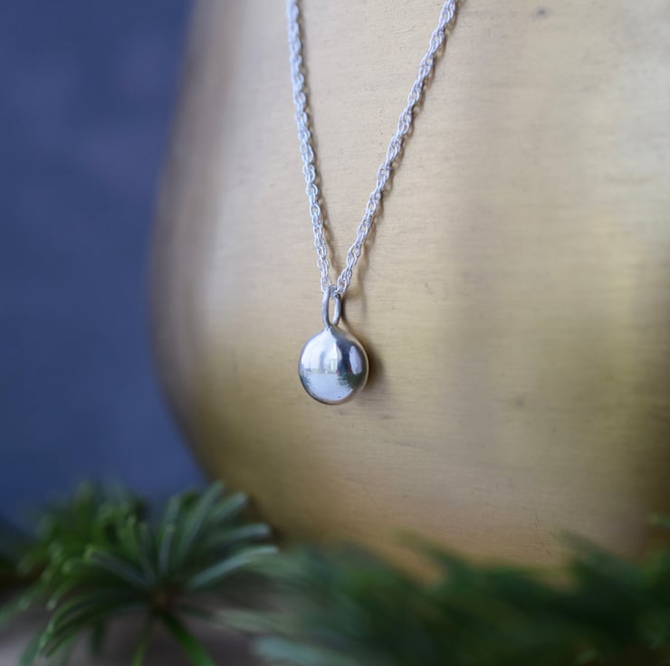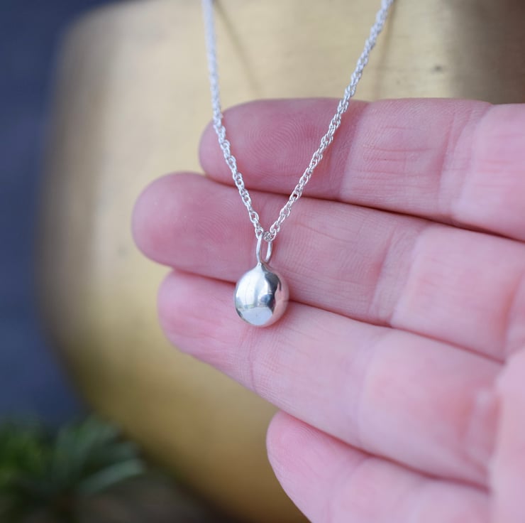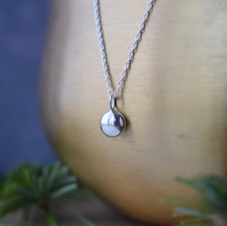This silver pendant is both stylish and eco-conscious, using recycled silver offcuts to produce this versatile nugget pendant. Designed and made by Isobel Robinson at her Yorkshire home studio, its minimalist form is created with a contemporary yet timeless style in mind.