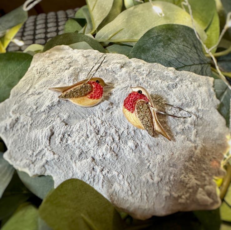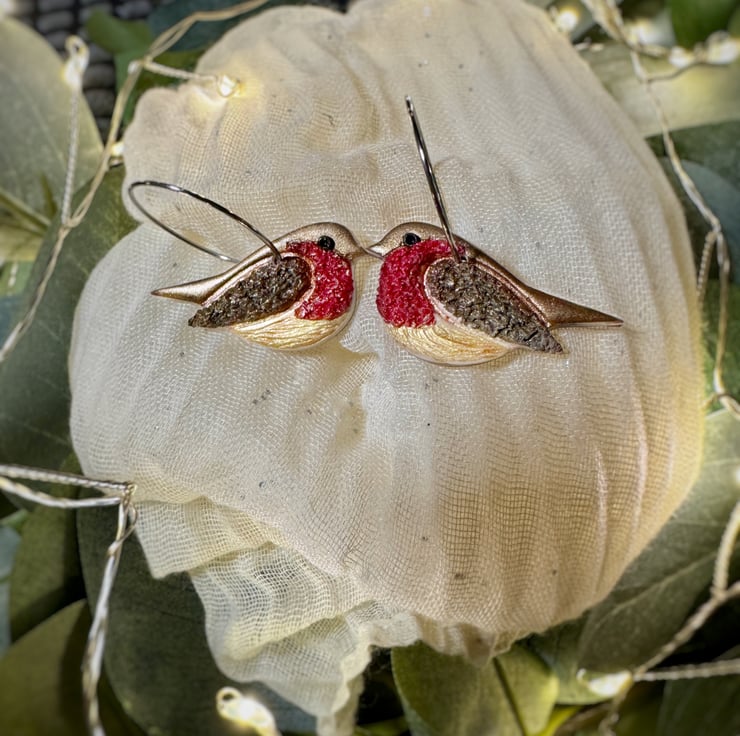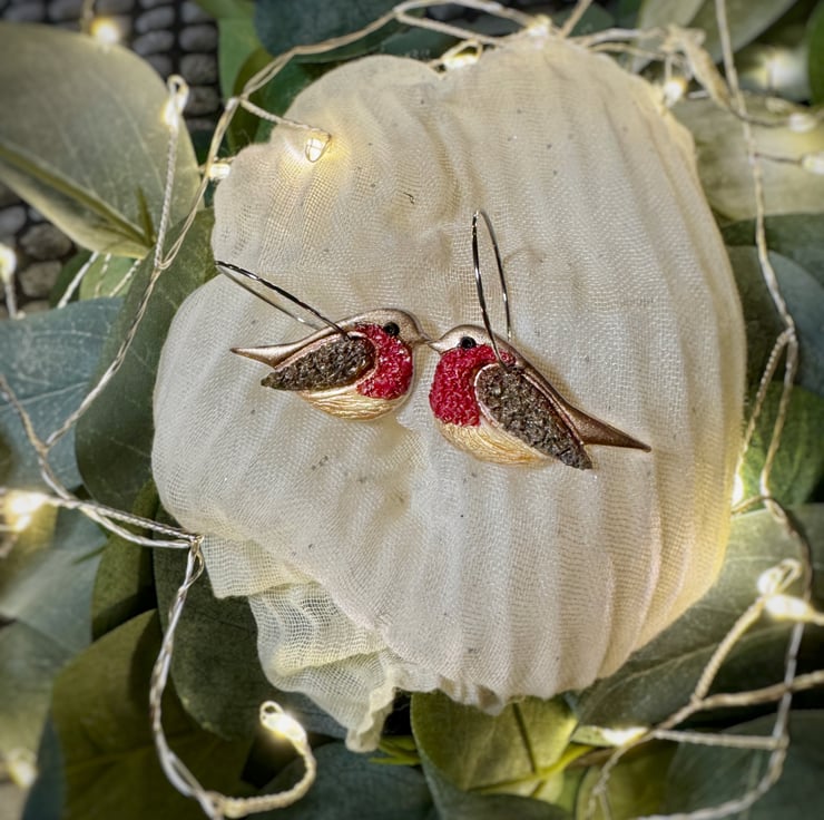 These handmade robin earrings feature delicate, shimmering details that bring the little birds to life.
