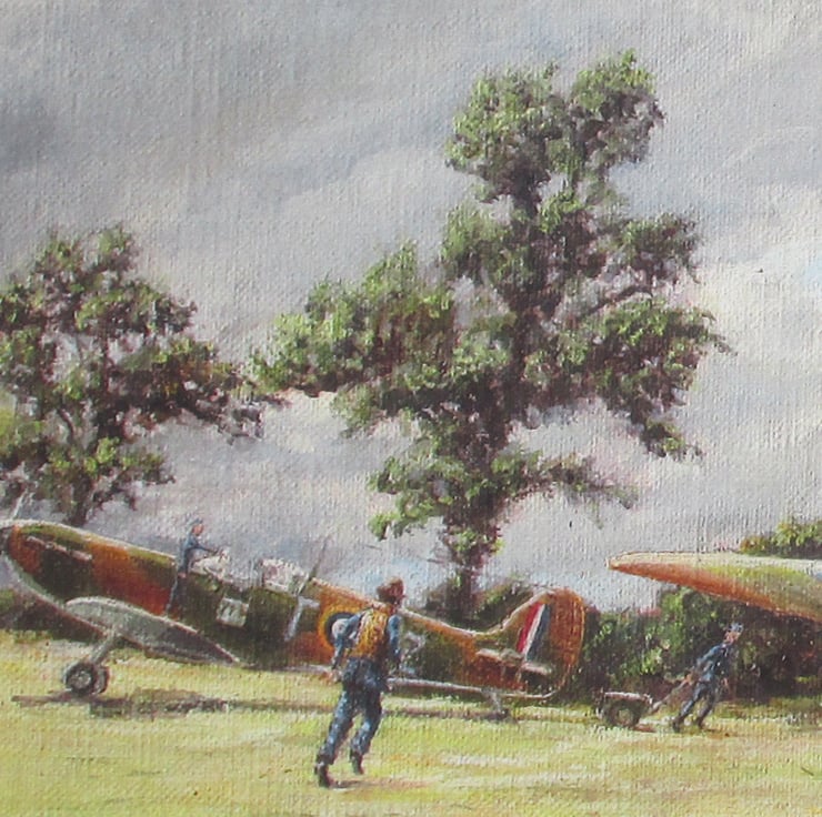 '234 Squadron Scramble' - Spitfires of F/Lt. Pat Hughes and P/O. Bob Doe, 234 Squadron.