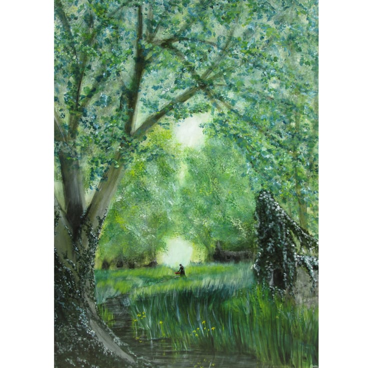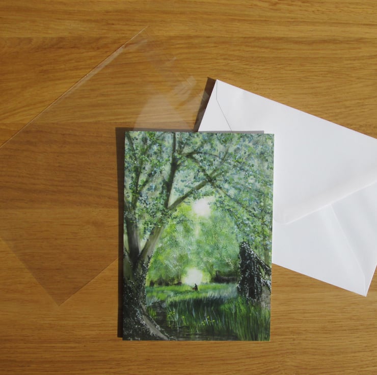 Atmospheric Landscape Art Card-Woodland Glade Inspired By Poetry-7x5 Blank Card