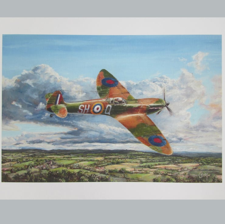 SUPERB SPITFIRE AVIATION FINE ART PRINT by UK Artist, Conway Rowland.