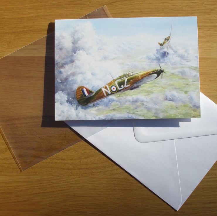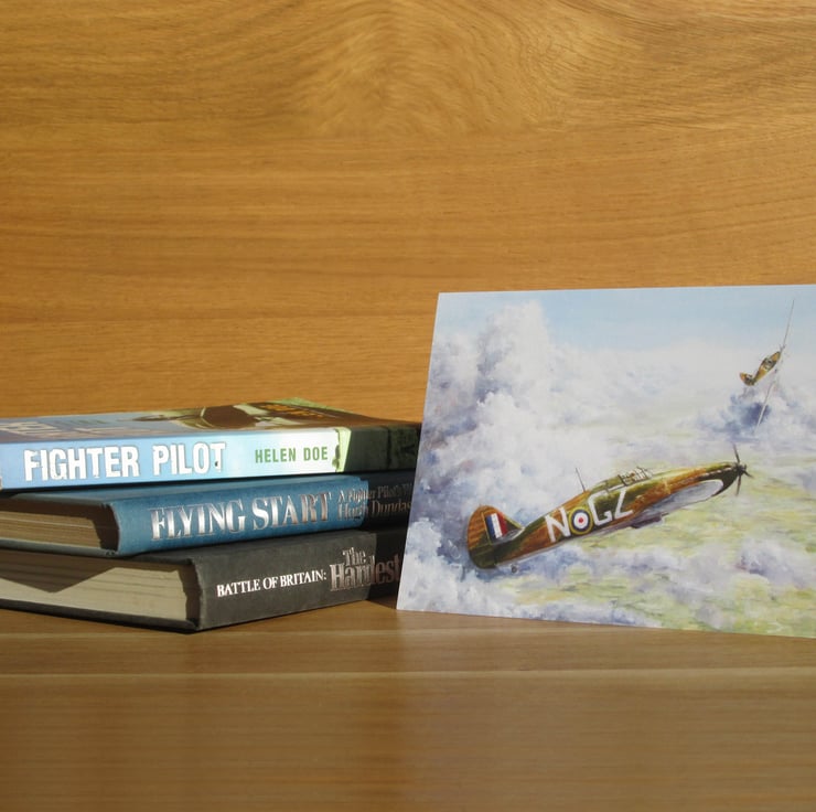 The card design is one of a range of designs taken from my original oil paintings, created to commemorate the bravery of the pilots involved in the Battle of Britain.