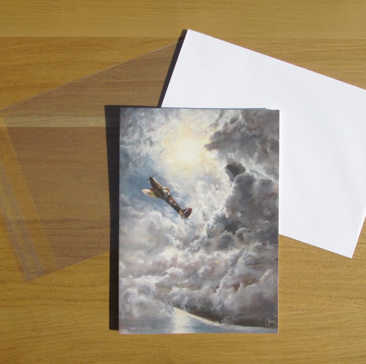 The card design is one of a range of designs taken from my original oil paintings, created to commemorate the bravery of the pilots involved in the Battle of Britain.