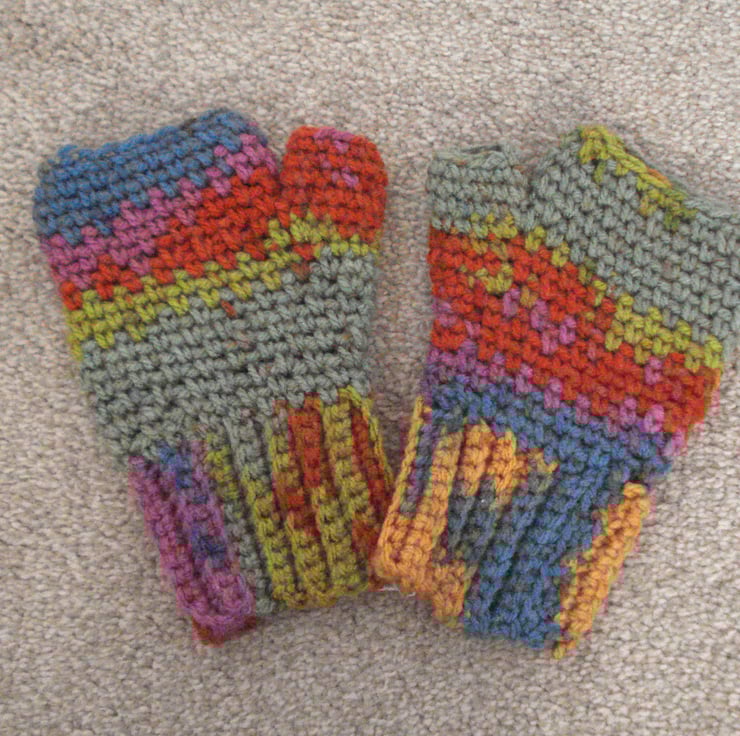 Crochet Fingerless Gloves In A Multi Yarn (R138)