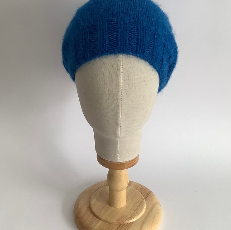 I have designed and knitted this slouch beanie / slouch hat 'Elodie' in a delightfully soft, baby alpaca blend yarn . I've also added a cute little corkscrew curl to the top ! Very lightweight but super-cosy.