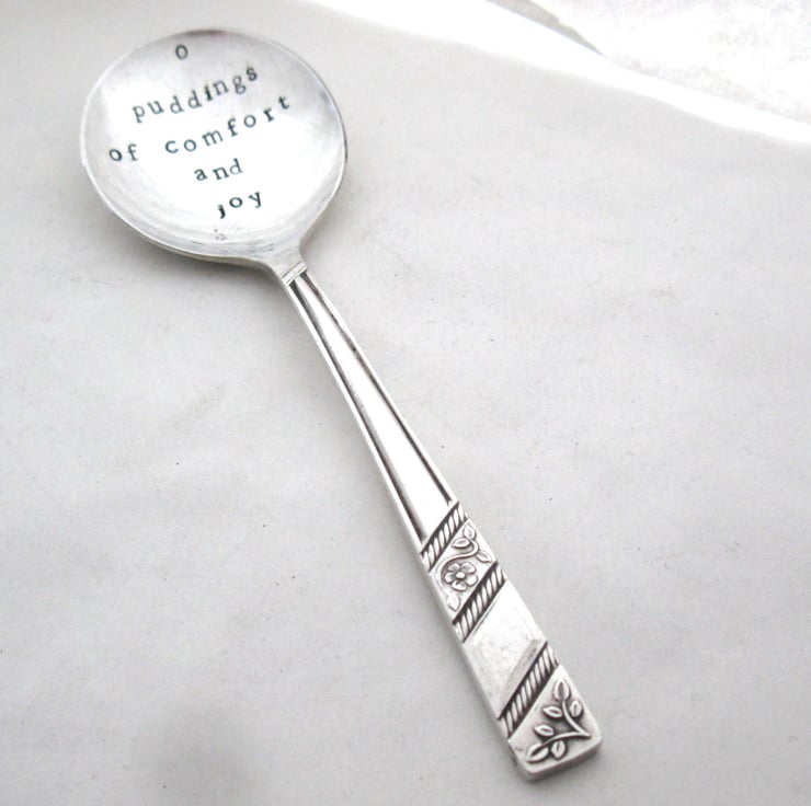 Another in my pud spoon series. This one's stamped 'o puddings of comfort and joy' and now I bet you're hearing that tune in your head...