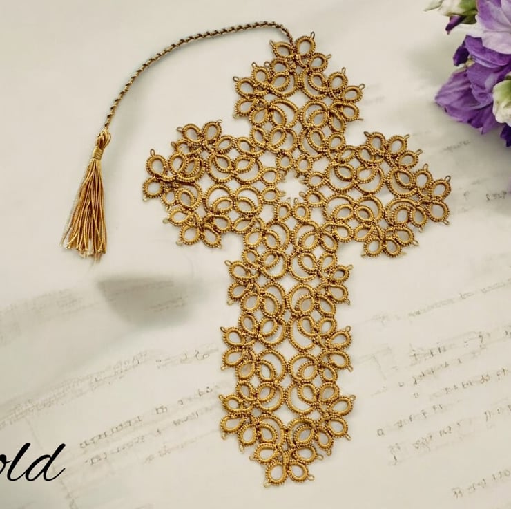 Tatted lace cross bookmark.