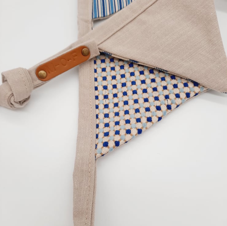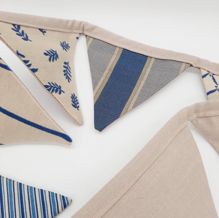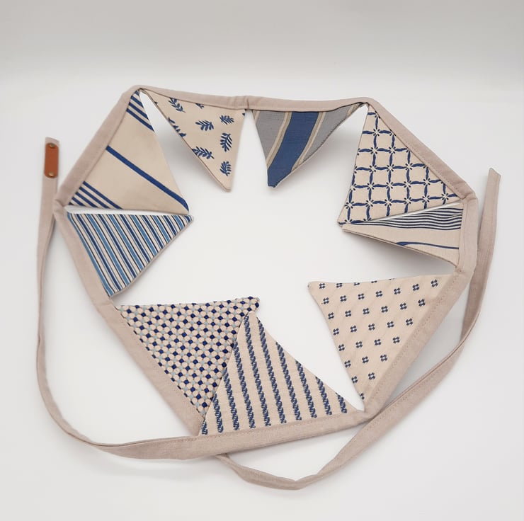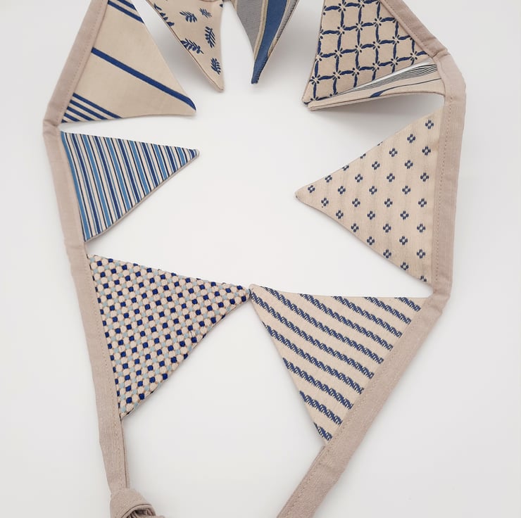 The main colour theme is cream and blue, each triangle is lined with a taupe / beige fabric.