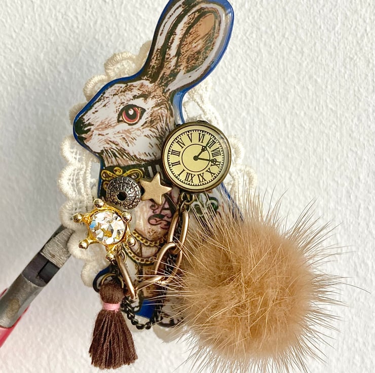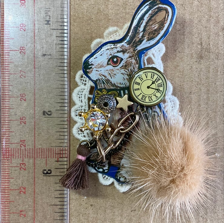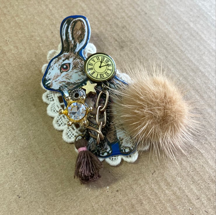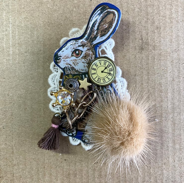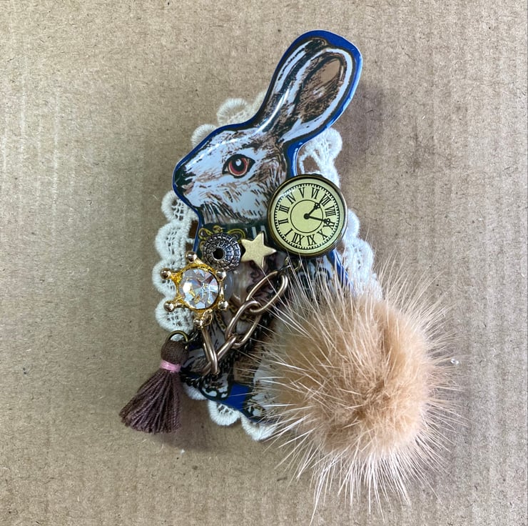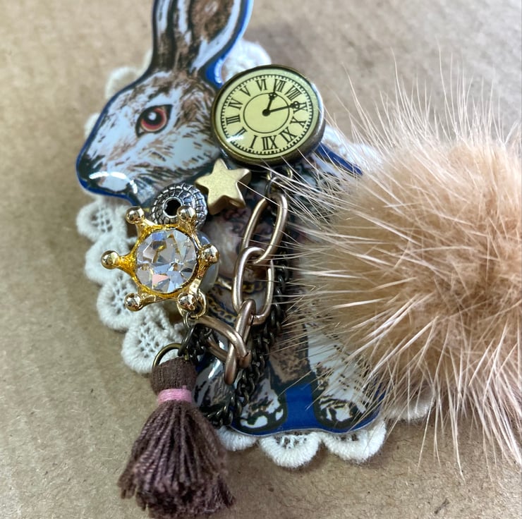 kitsch Upcycled Handmade Rabbit Alice in Wonderland Brooch