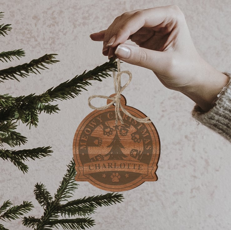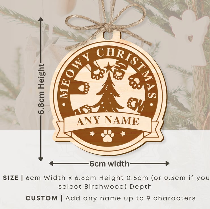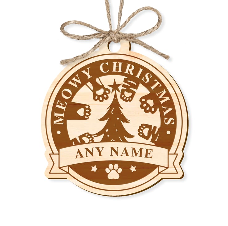 Personalised Meowy Christmas - Tree & Paws Bauble: Custom Cat Xmas Decor