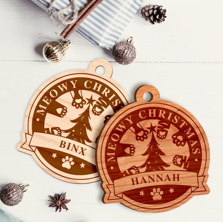 - Beautifully engraved design featuring a festive Christmas tree surrounded by playful cat paws, bringing a whimsical and feline-inspired twist to the holiday season.