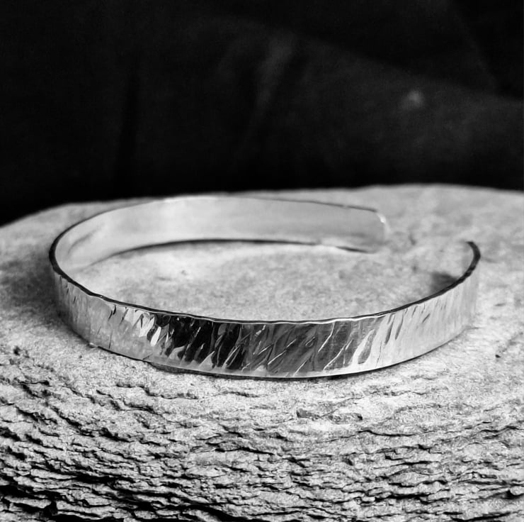 Stunning simple textured silver bangle - handmade in my studio in Somerset - size medium.