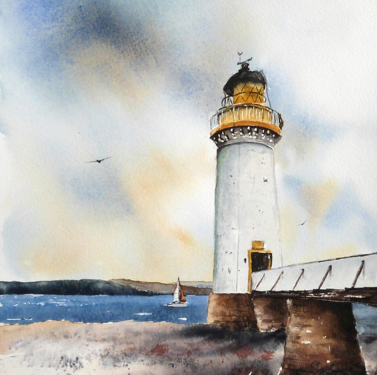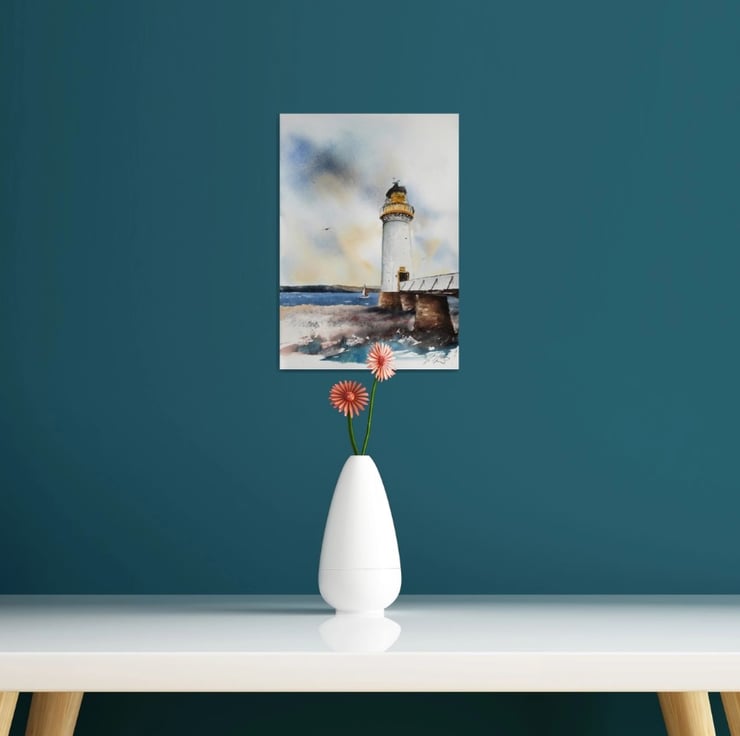 Working from my home studio on the beautiful Isle of Mull off the west coast of Scotland, my paintings are inspired by the wonderful Seascapes, Landscapes and Wildlife that surround me. This particular painting is of Rubha nan Gall Lighthouse near Tobermory, Isle of Mull. Painted from my own photo.