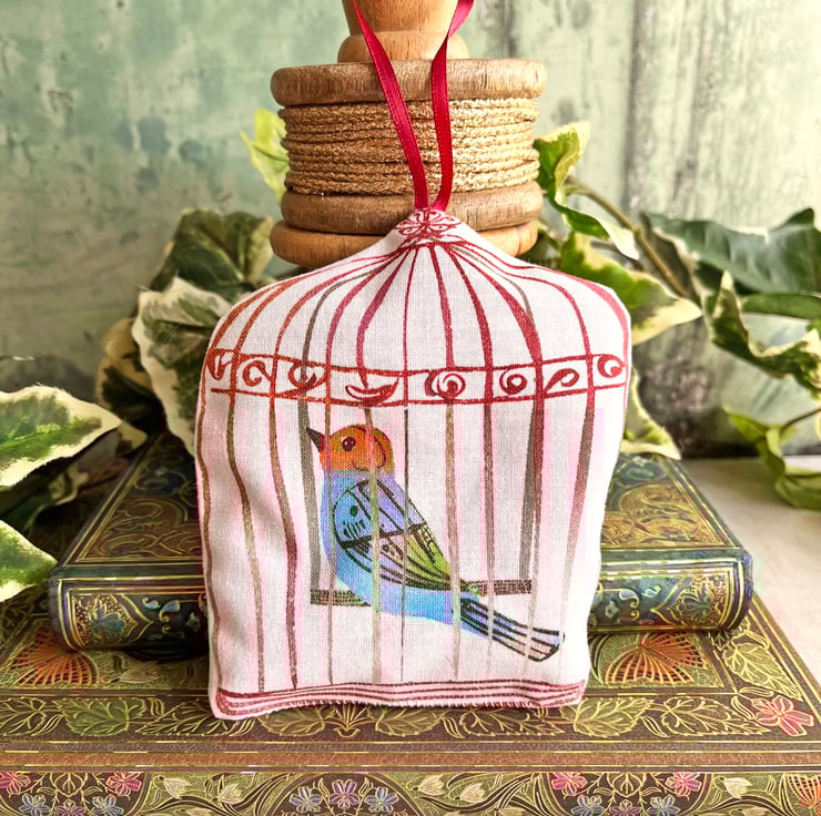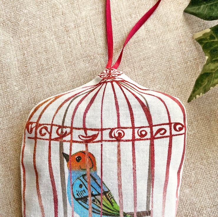 The design has been printed onto 156gsm cotton fabric with plain white on the reverse. The ribbon loop is approx 10cm.