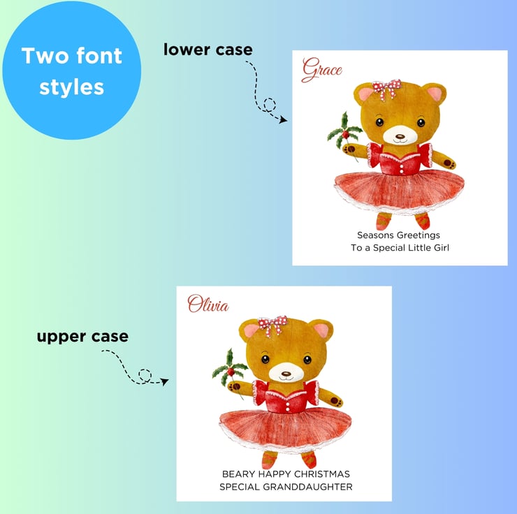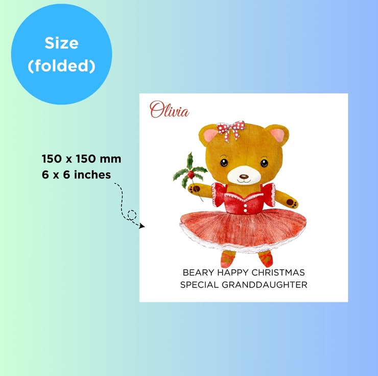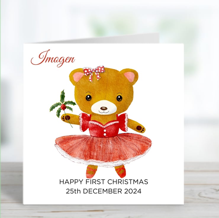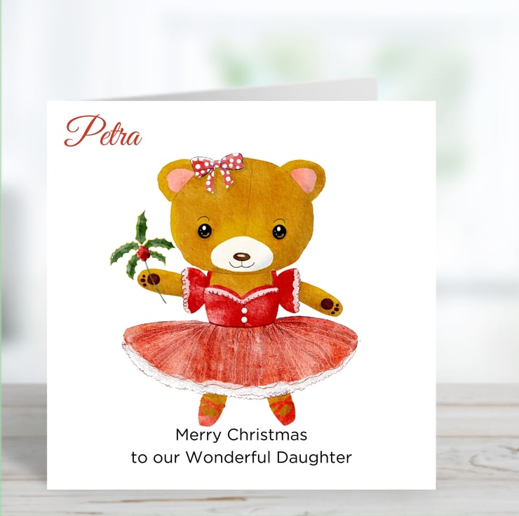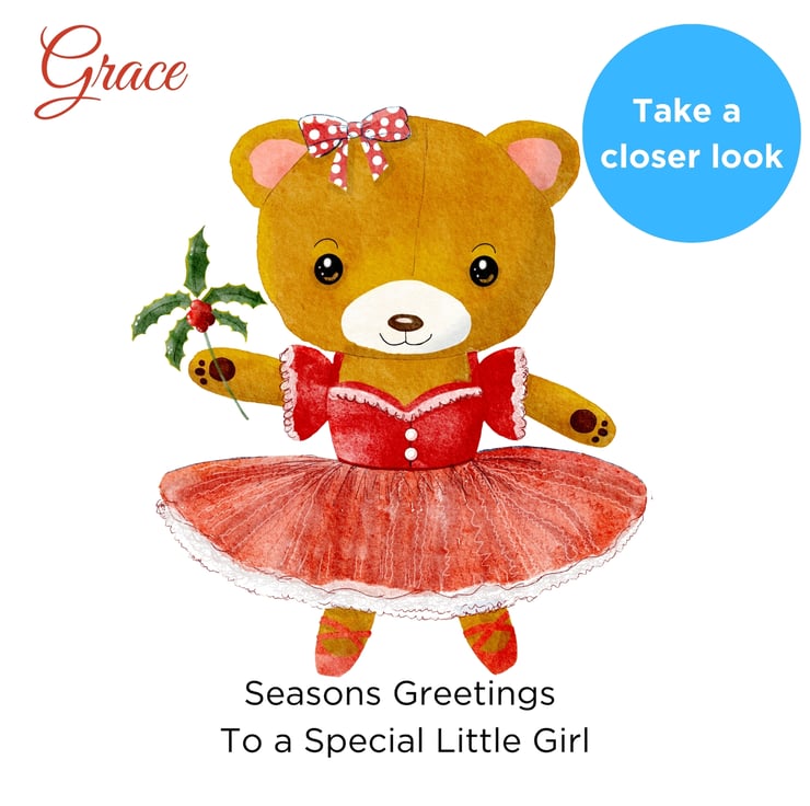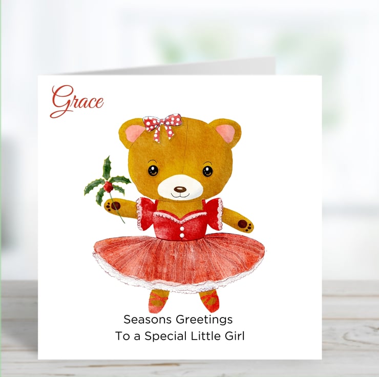How cute is this adorable ballerina teddy bear? This lovely card will delight and enchant your little girl adding magic and sparkle to her Christmas.