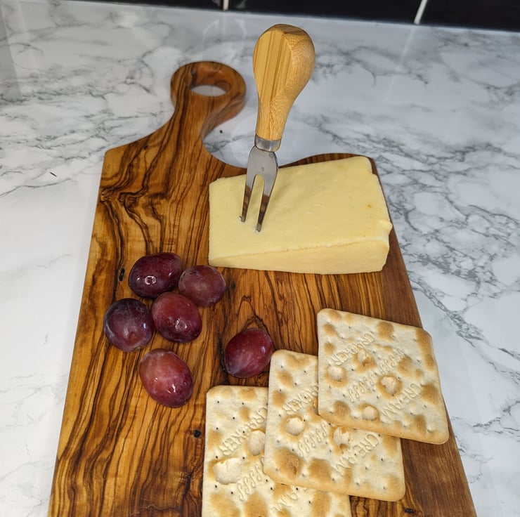 Introducing our exquisite Spalted Beech Serving Board with Integrated Handle—a perfect blend of functionality and natural beauty. Crafted from the finest spalted beech wood, each board showcases unique, intricate patterns formed by the natural spalting process, making every piece one-of-a-kind. The integrated handle ensures easy carrying and serving, adding convenience to its charm. Ideal for presenting cheeses, charcuterie, or hors d'oeuvres, this serving board is a stunning addition to any kitchen or dining room. Elevate your entertaining experience with a serving board that marries elegance and practicality.