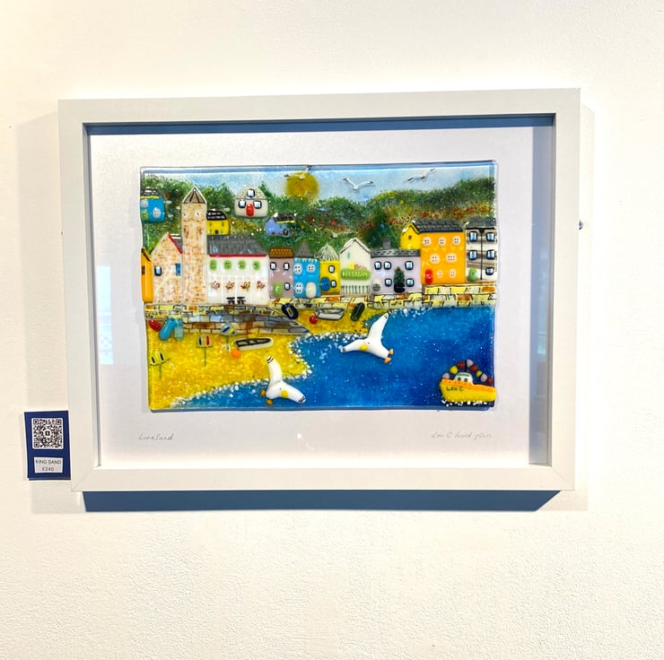 A beautiful and original fused glass interpretation of kingsand in cornwall which is a stones throw from my home in plymouth . I love creating with glass using glass art glass, glass powders and frit . Each of my art works are fused over several firings . This is then framed . A beautiful light reflecting addition to any home . Framed 17 inch x 12 inch approximately. Please just ask if you have any questions . Lou x