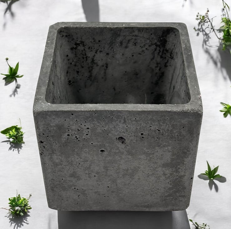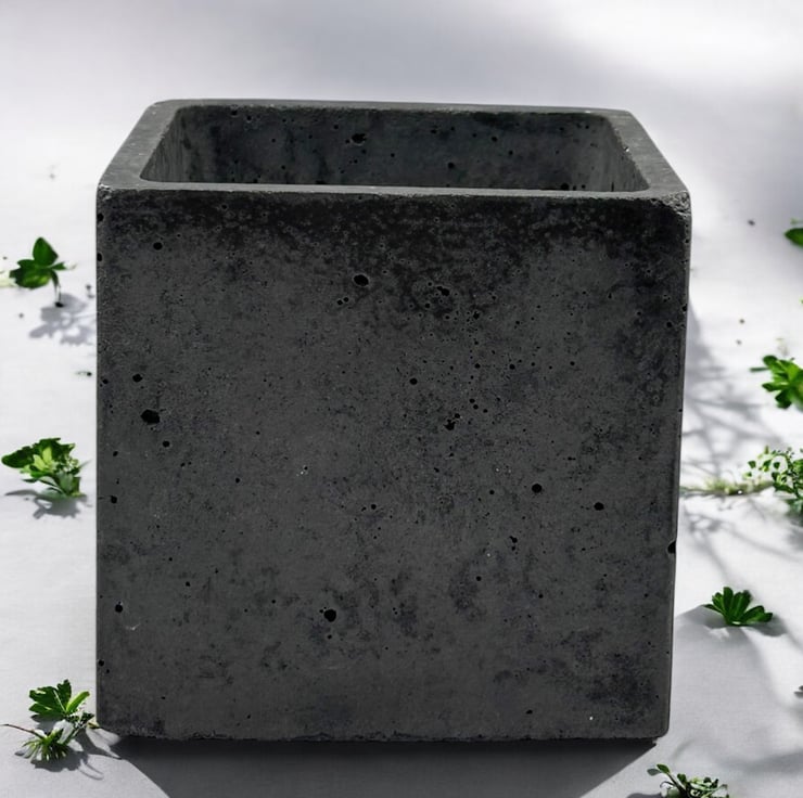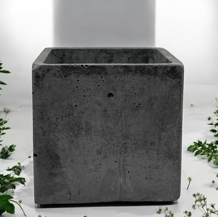 I handcrafted this cube-shaped marbled plant pot in my small home studio in Standish. It is made from high-quality Portland cement and sand. The dark grey colour was achieved by adding a cement pigment to the mix. Its neutral colour makes it an ideal gift and allows it to fit into most interior design schemes.