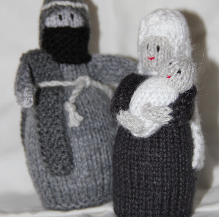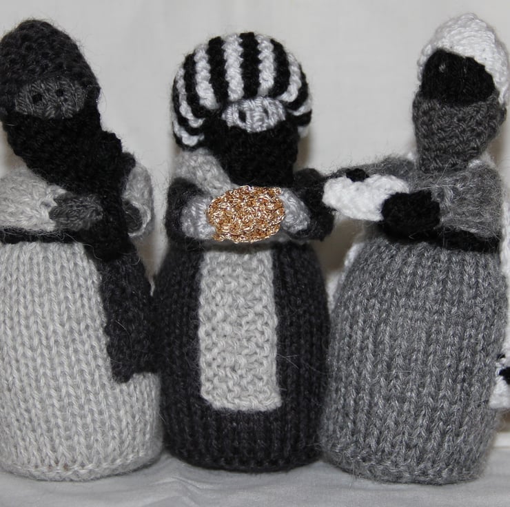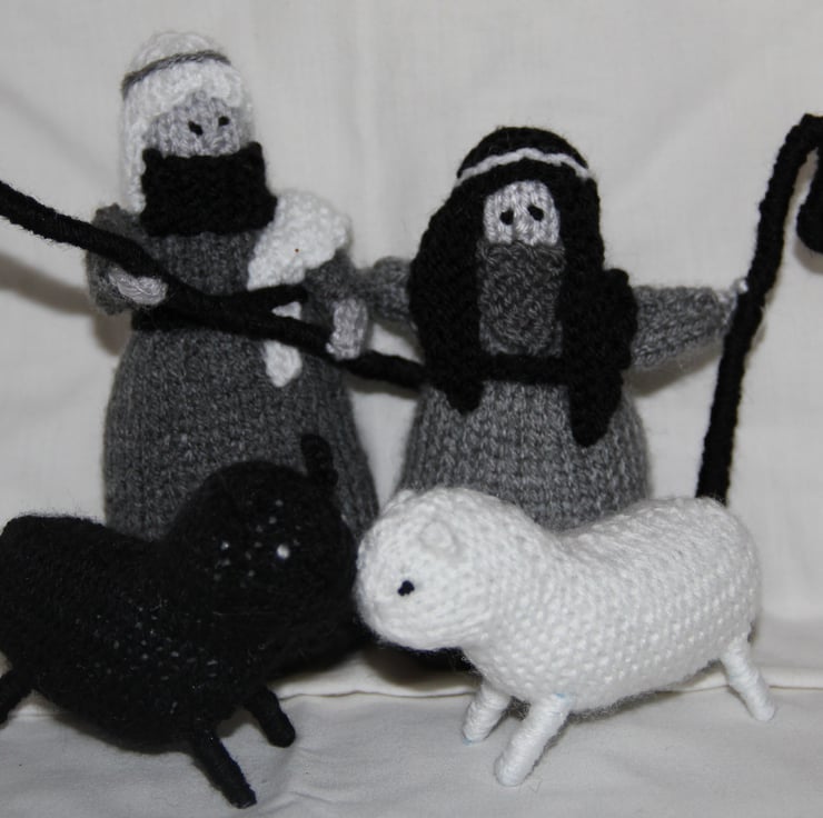 This is a gorgeous, stylish and unusual Christmas 'Knitivity', knitted in shades of grey, black and white. The only bright colour is the gift of Gold. All they key players are present - Mary & Joseph, the Baby Jesus, the 3 Kings and the Shepherds with their flock (well, two of the sheep anyway!). I have only knitted two of these, so they are very special indeed.