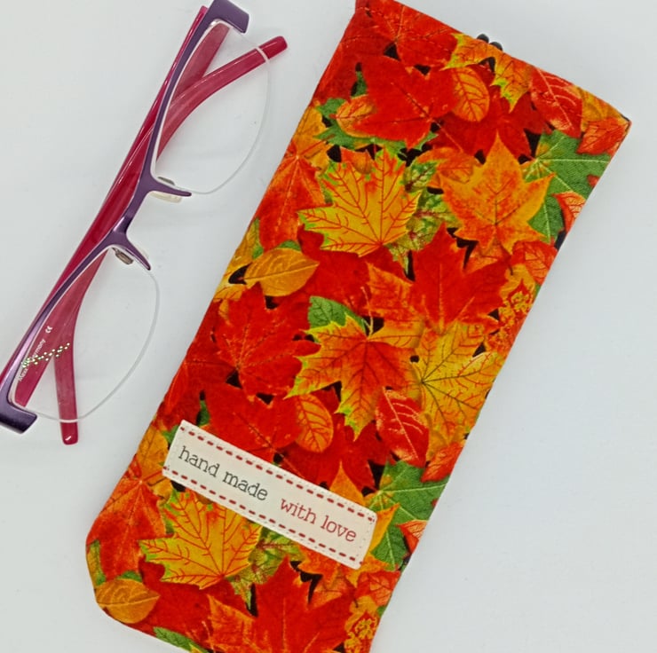 It is wadded to protect your glasses and features a hand made with love label on the reverse. The lining is in pink black cotton.