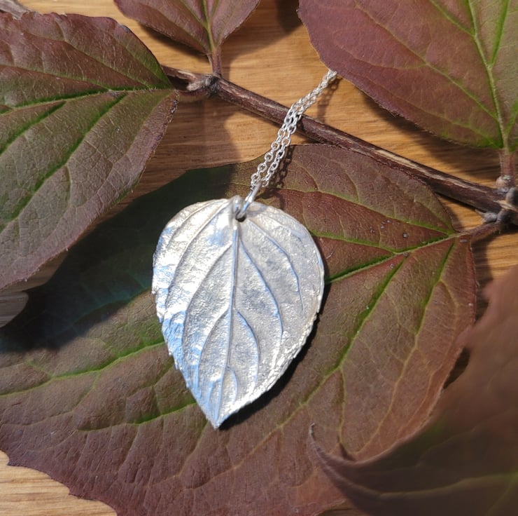All my pendants are handmade from silver clay, using real leaves. I create a mould of the leaf to capture every detail. Silver clay is then pressed into the mould before being dried, sanded, fired and polished.