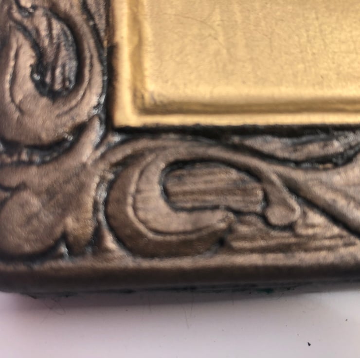The board has been lovingly painted in an aged Bronze and Gold Metallic effect in keeping with the character of the original board and carefully enhanced through a variety of painting techniques.