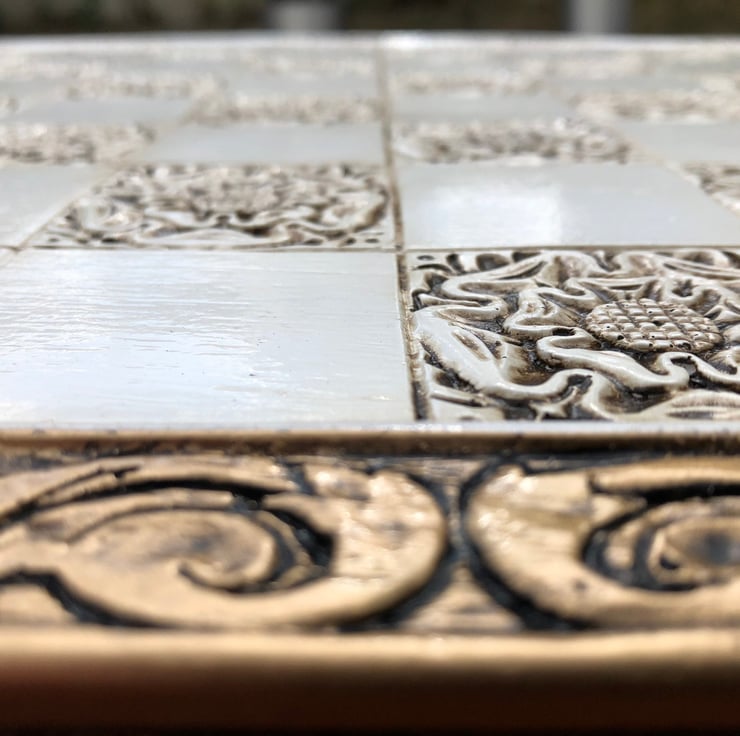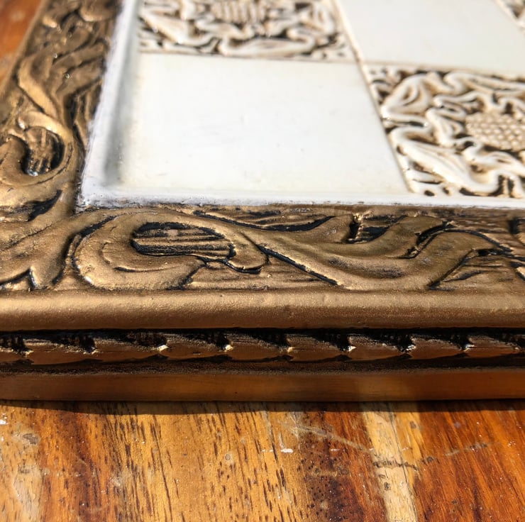 The board has been lovingly painted in an aged white and Gold Metallic effect in keeping with the character of the original board and carefully enhanced through a variety of painting techniques.